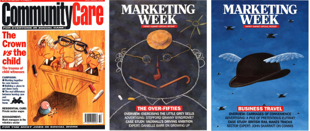 All these illustration were published in Börse Online, a German stock market magazine, where my badger illustrated every week the ups and downs of the stock market for many years. (The German stock market index is called DAX which means also 'badger')
